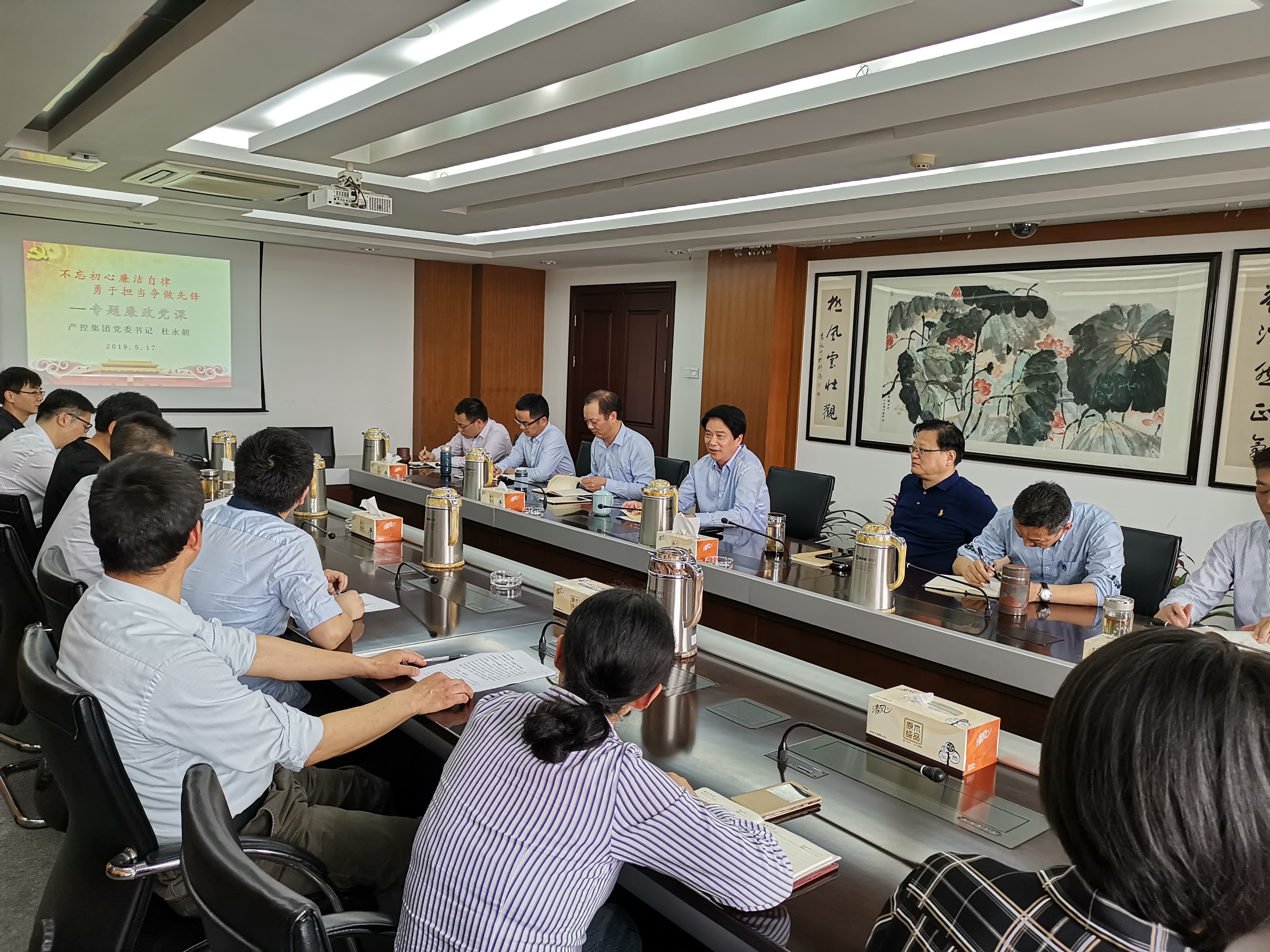 今年是我市第十二個“510”思廉日,為進一步加強黨員干部職工的廉潔從業(yè)意識,5月17日,產(chǎn)控集團黨委書記杜永朝為直屬支部全體黨員上了一堂以“不忘初心廉潔自律,勇于擔(dān)當爭做先鋒”為主題的廉政黨課。