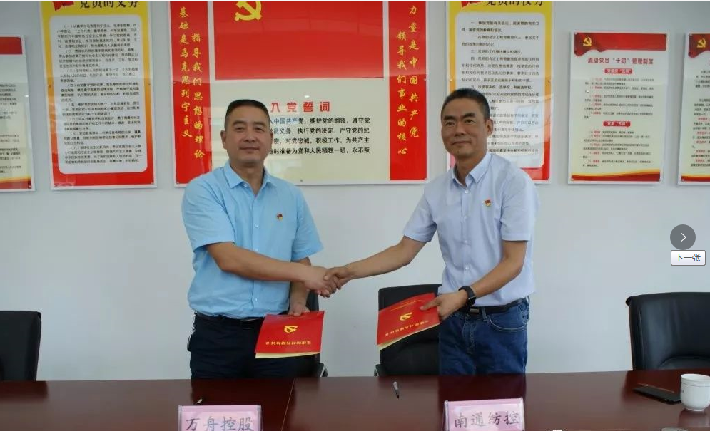 為進(jìn)一步加強(qiáng)黨建工作,深化黨建工作內(nèi)涵,豐富黨建工作手段,創(chuàng)新黨建工作方式,圍繞中心工作,服務(wù)發(fā)展大局,充分發(fā)揮黨建引領(lǐng)企業(yè)發(fā)展之作用,7月4日上午,南通紡織控股集團(tuán)紡織染有限公司黨委與浙江萬舟控股集團(tuán)有限公司黨委在萬舟控股集團(tuán)黨員活動室簽署了《黨建結(jié)對共建協(xié)議書》。 浙江萬舟是一家以專業(yè)研發(fā)生產(chǎn)時尚面料、紗線為主業(yè),集實(shí)業(yè)投資、資產(chǎn)投資、棉花收購、進(jìn)出口貿(mào)易等多元化綜合發(fā)展的控股集團(tuán)企業(yè),是省重大產(chǎn)業(yè)項目。旗下?lián)碛姓憬讯兰徔椨邢薰?、浙江蘭棉紡織有限公司、浙江萬舟進(jìn)出口有限公司三家子公司。