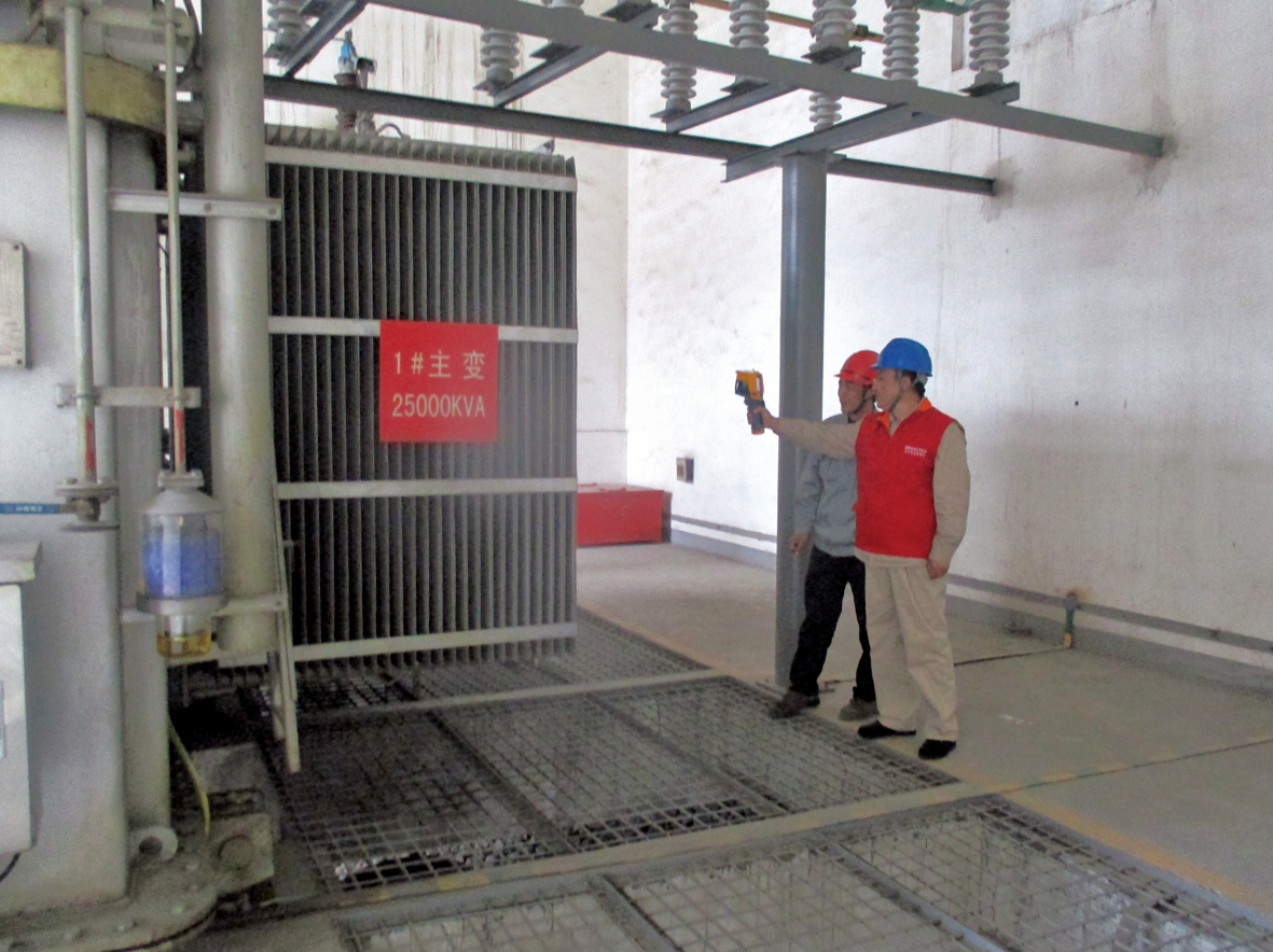 為確保帶電檢測工作的順利進(jìn)行,杜絕人身、人為事故的發(fā)生,江農(nóng)變電所所長對(duì)全站一二次設(shè)備運(yùn)行情況及日常維護(hù)檢修工作進(jìn)行了介紹。作業(yè)前,公司熱電人員對(duì)供電公司試驗(yàn)人員進(jìn)行了“帶電檢測工作前”的作業(yè)危險(xiǎn)分析及注意事項(xiàng)培訓(xùn),并通過圖例針對(duì)各類帶電設(shè)備安全距離進(jìn)行了分析。 培訓(xùn)結(jié)束后,熱電分廠合理安排工作人員,確定工作負(fù)責(zé)人和專職監(jiān)護(hù)人,明確各級(jí)人員工作內(nèi)容及職責(zé),帶領(lǐng)“通電先鋒”服務(wù)隊(duì)人員進(jìn)入現(xiàn)場。大家兵分三路,對(duì)1#主變、2#主變、35KV開關(guān)柜、110KVGIS等電氣設(shè)備進(jìn)行了紅外測溫、局放、油色譜分析等帶電檢測工作,并對(duì)全站二次設(shè)備進(jìn)行了狀態(tài)巡視、采樣檢查、回路檢測等工作,積極排查電氣設(shè)備隱患。