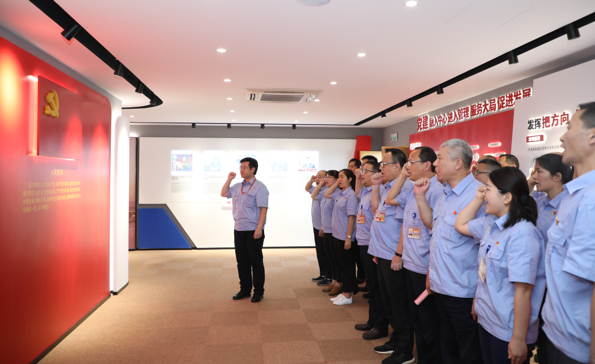 在公司黨委委員、副總經(jīng)理毛繼潤(rùn)帶領(lǐng)下,參加活動(dòng)的全體黨員面向黨旗,莊嚴(yán)宣誓,重溫入黨誓詞。公司黨委為現(xiàn)場(chǎng)7月入黨的12名同志過政治生日,贈(zèng)送政治生日賀卡和圖書。公司黨群紀(jì)檢部副部長(zhǎng)金周玉帶領(lǐng)參觀活動(dòng)中心。黨員們?cè)诹疂嵑弦?guī)承諾墻上簽名。