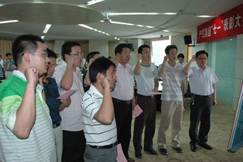 6月30日,集團黨委召開紀念“七一”暨表彰大會,集團領(lǐng)導班子成員、所屬各基層黨組織負責人、優(yōu)秀黨員及優(yōu)秀黨務工作者代表70余人出席。 會上,集團黨委授予南通科技黨委、江山股份黨委、石化總支、離休支部以及產(chǎn)控直屬支部“五好”黨組織稱號,表彰了錢永康等47名優(yōu)秀黨員和陶坤山等23名優(yōu)秀黨務工作者。 南通科技黨委代表“五好”黨組織做了《緊扣中心服務大局、凝心聚力發(fā)揮作用》的交流發(fā)言,優(yōu)秀黨務工作者及優(yōu)秀黨員代表也結(jié)合各自實際,介紹了圍繞經(jīng)濟工作、創(chuàng)新開展黨建工作的經(jīng)驗和堅定信念、立足本職、爭當優(yōu)秀黨員的先進事跡。 集團黨委書記、董事長陳照東代表黨委作報告。他總結(jié)了2009年黨建工作,通報了今年上半年集團經(jīng)濟運行和主要工作情況,以“突出重點,全面完成年度目標任務”為題就下半年經(jīng)濟工作提出要求,以“開展創(chuàng)先爭優(yōu)”和“爭做勤廉表率”為重點就下一階段黨建工作作出部署。 會議號召各級黨組織和全體黨員抓住經(jīng)濟復蘇機遇,將黨建工作與經(jīng)濟工作緊密結(jié)合,抓好基層組織和黨員隊伍建設,加強黨風廉政建設和監(jiān)督保障工作,為完成全年目標、實現(xiàn)經(jīng)濟跨越發(fā)展而努力拼搏!