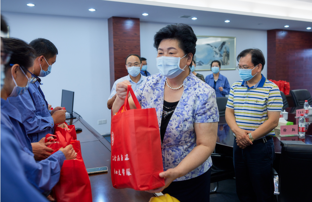 一下車,葛玉琴一行首先參觀了北廠區(qū)主要產(chǎn)品裝置,詳細了解了當前疫情防控工作情況,走進車間慰問一線員工并,送上防暑用品。葛玉琴指出,要嚴格按照上級部門的有關(guān)部署,毫不松懈地抓好抓實防疫工作,規(guī)范執(zhí)行各項規(guī)章制度,強化應(yīng)急處置能力,切實做好外來人員、車輛等日常查驗工作。員工們在落實安全生產(chǎn)崗位職責的同時,做好疫情期間個人防護。她表示,“職工群眾是最樸素的人”,各部門要關(guān)心關(guān)愛高溫一線員工,更好保障職工群眾正常生活,維護公司安全有序運行。要進一步重視產(chǎn)業(yè)工人隊伍改革,在公司轉(zhuǎn)型發(fā)展階段,加強政治引領(lǐng),更好地發(fā)揮企業(yè)職工干事創(chuàng)業(yè)主心骨的作用,提升企業(yè)凝聚力、向心力和生命力。